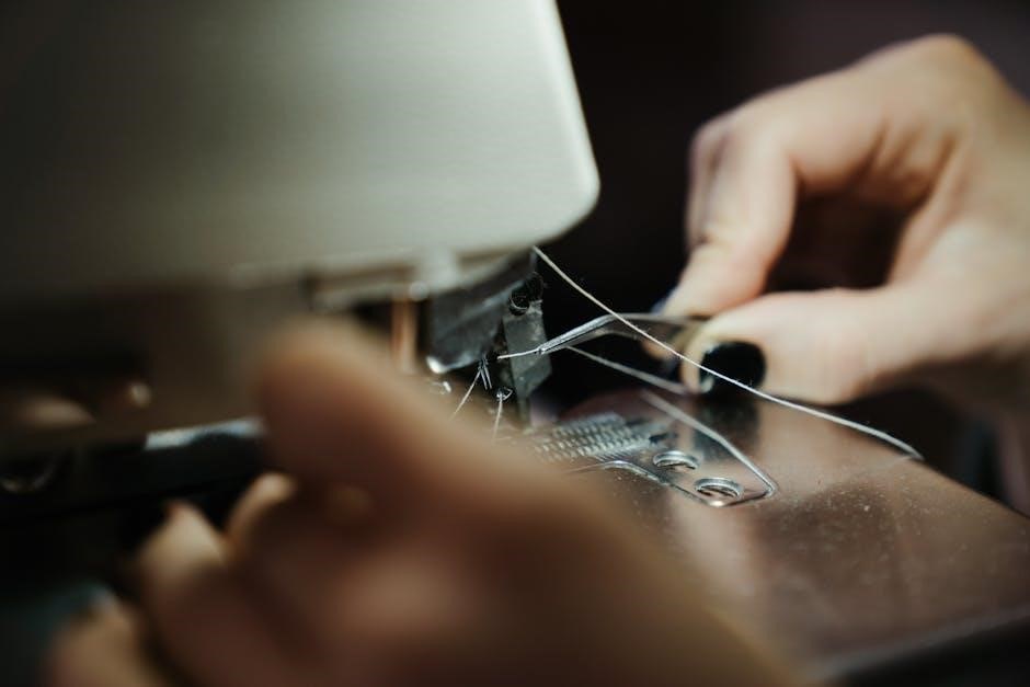 The PDF highlights the importance of proper tension and ensuring the thread is securely seated in each guide. Incorrect threading is a common cause of sewing issues; therefore, meticulous attention to the manual’s instructions is vital for optimal performance and preventing frustrating tangles.